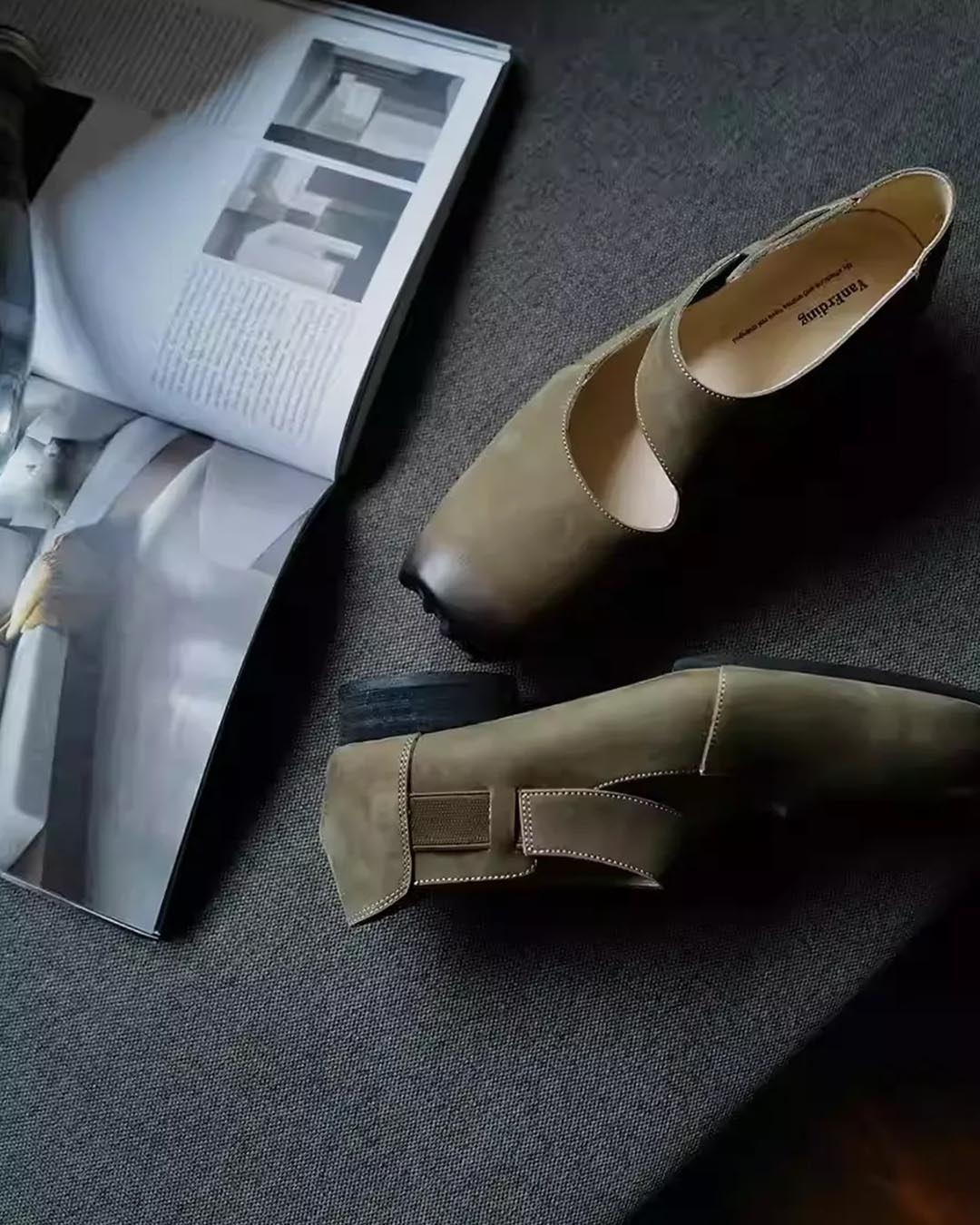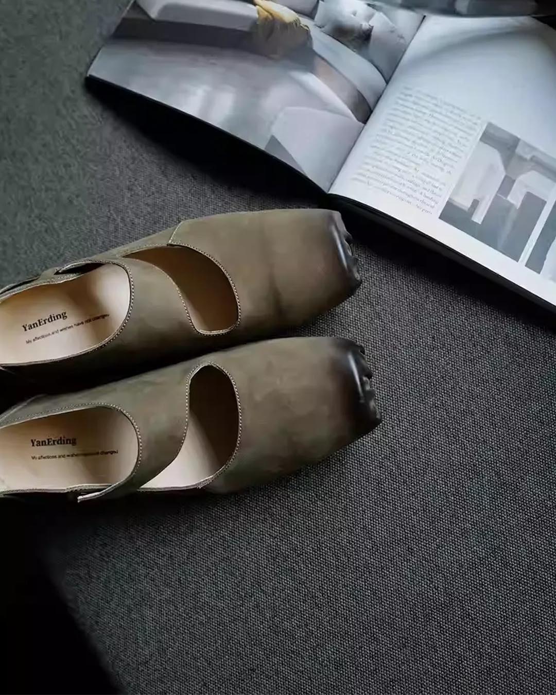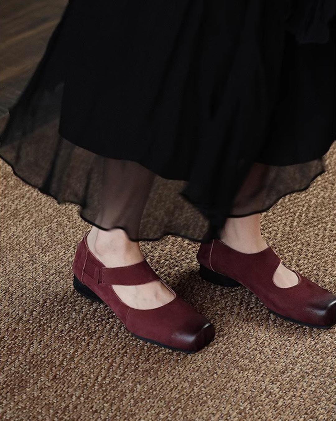 HANDCRAFTED SUEDE LEATHER VINTAGE BALLET FLATS - BROWN