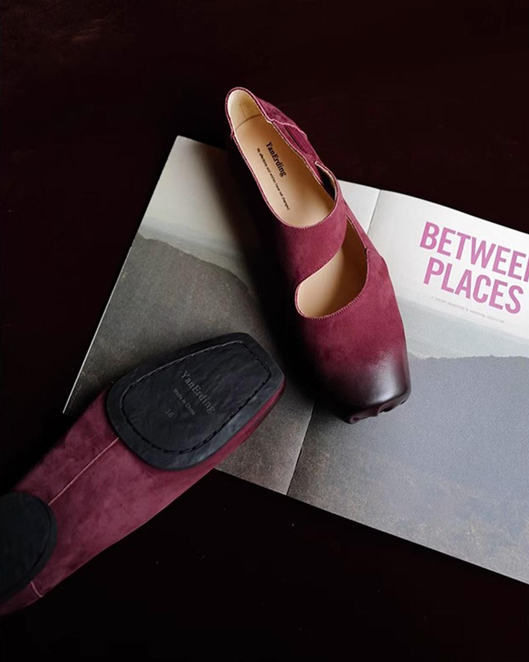 HANDCRAFTED SUEDE LEATHER VINTAGE BALLET FLATS - ROSE PURPLE