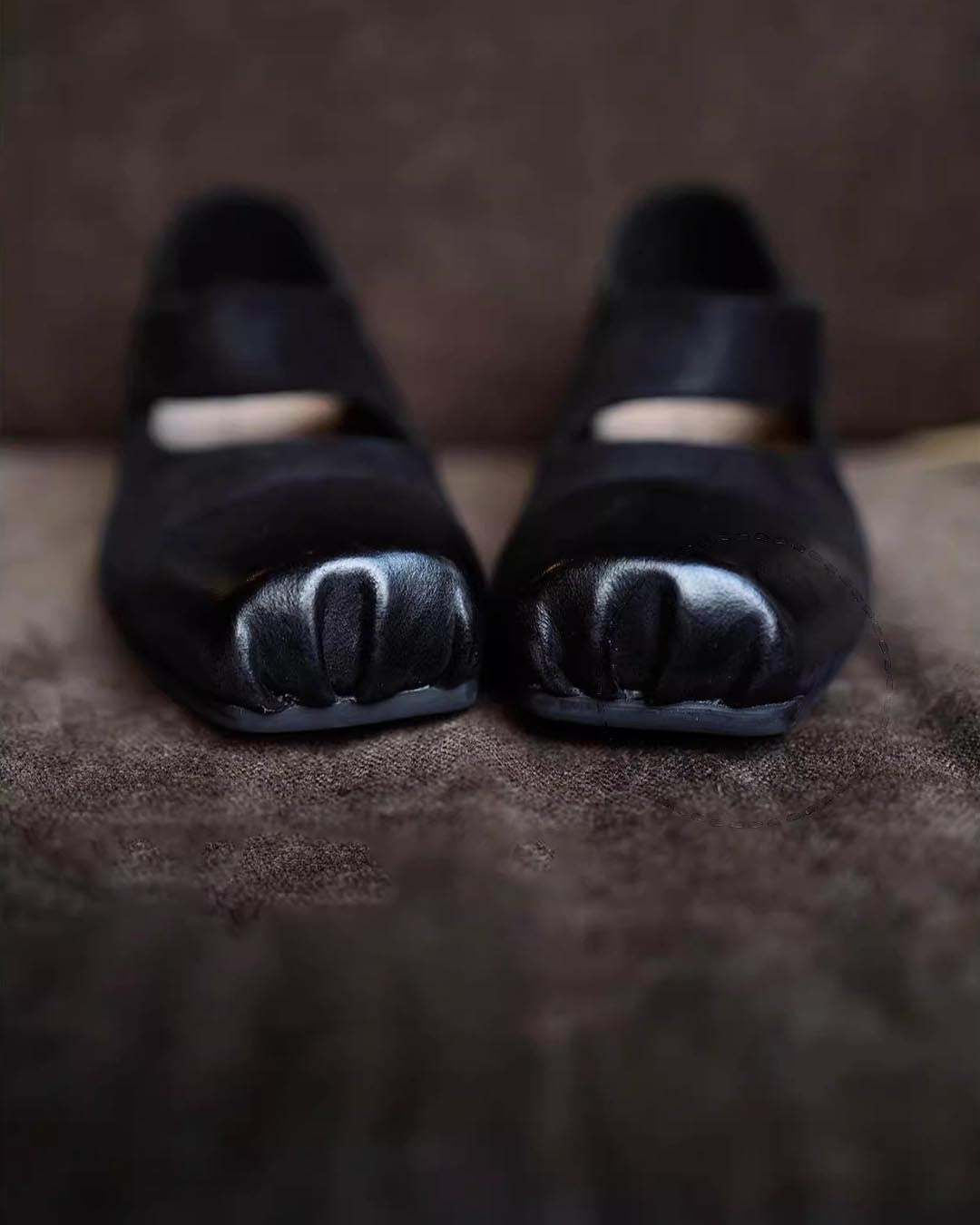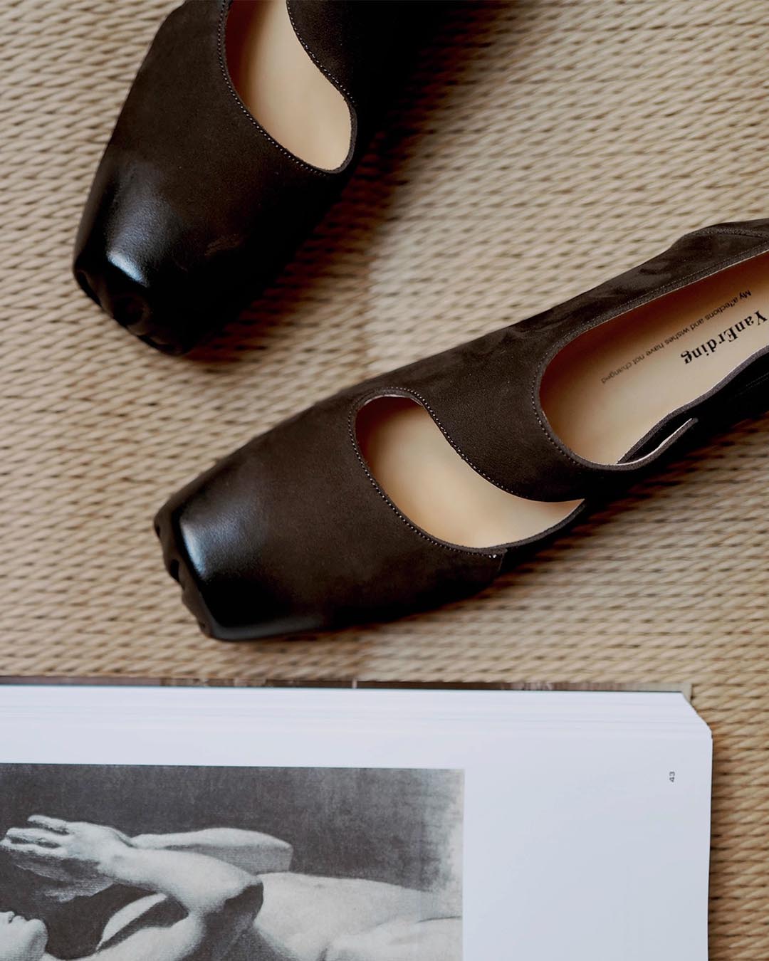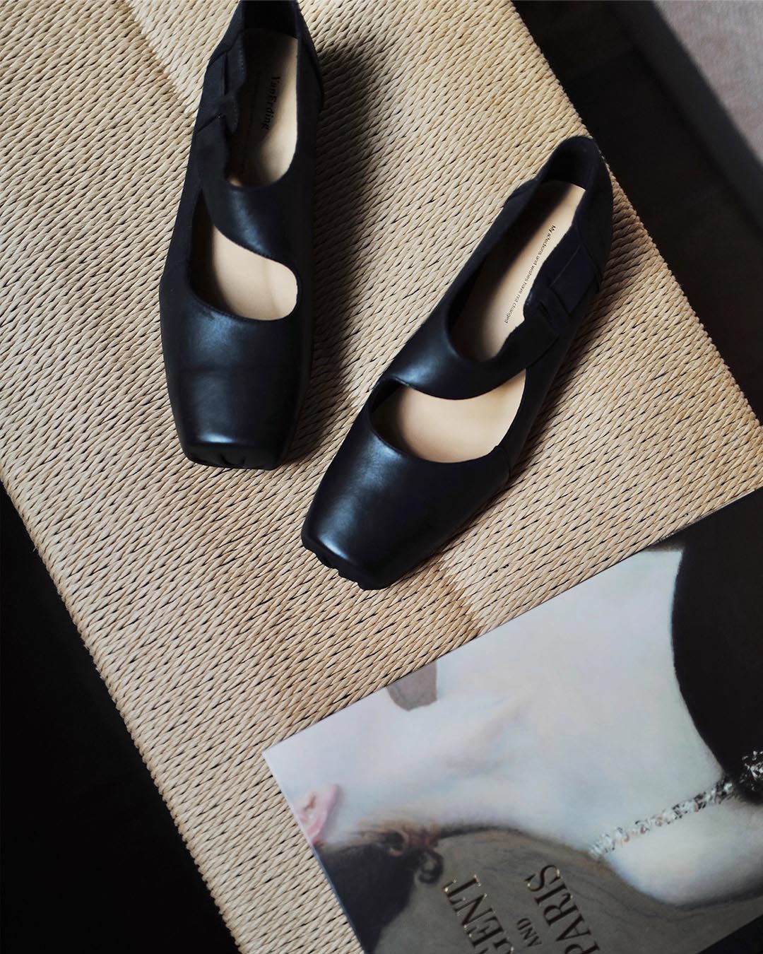 HANDCRAFTED SUEDE LEATHER VINTAGE BALLET FLATS - INKSTONE BLACK