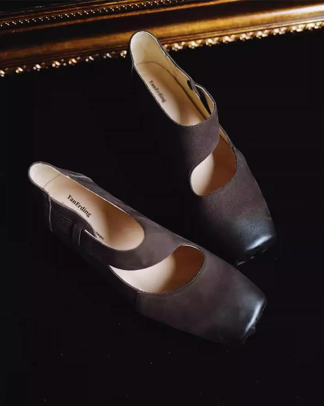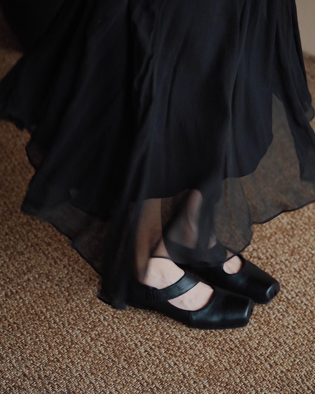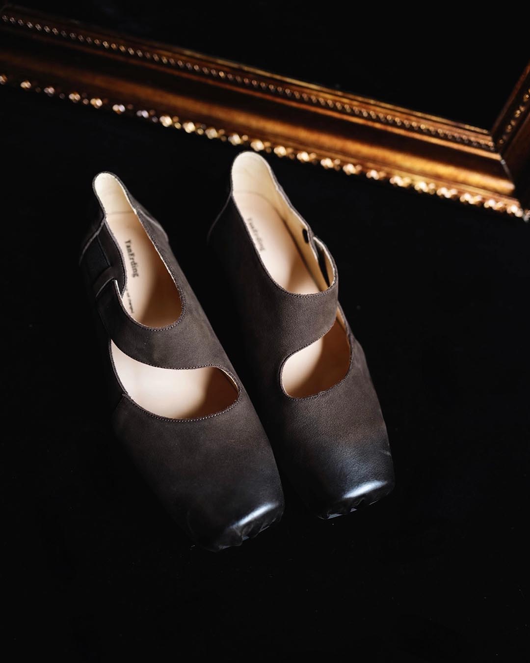 HANDCRAFTED SUEDE LEATHER VINTAGE BALLET FLATS - INKSTONE BLACK