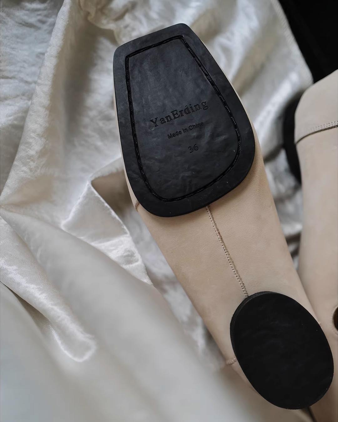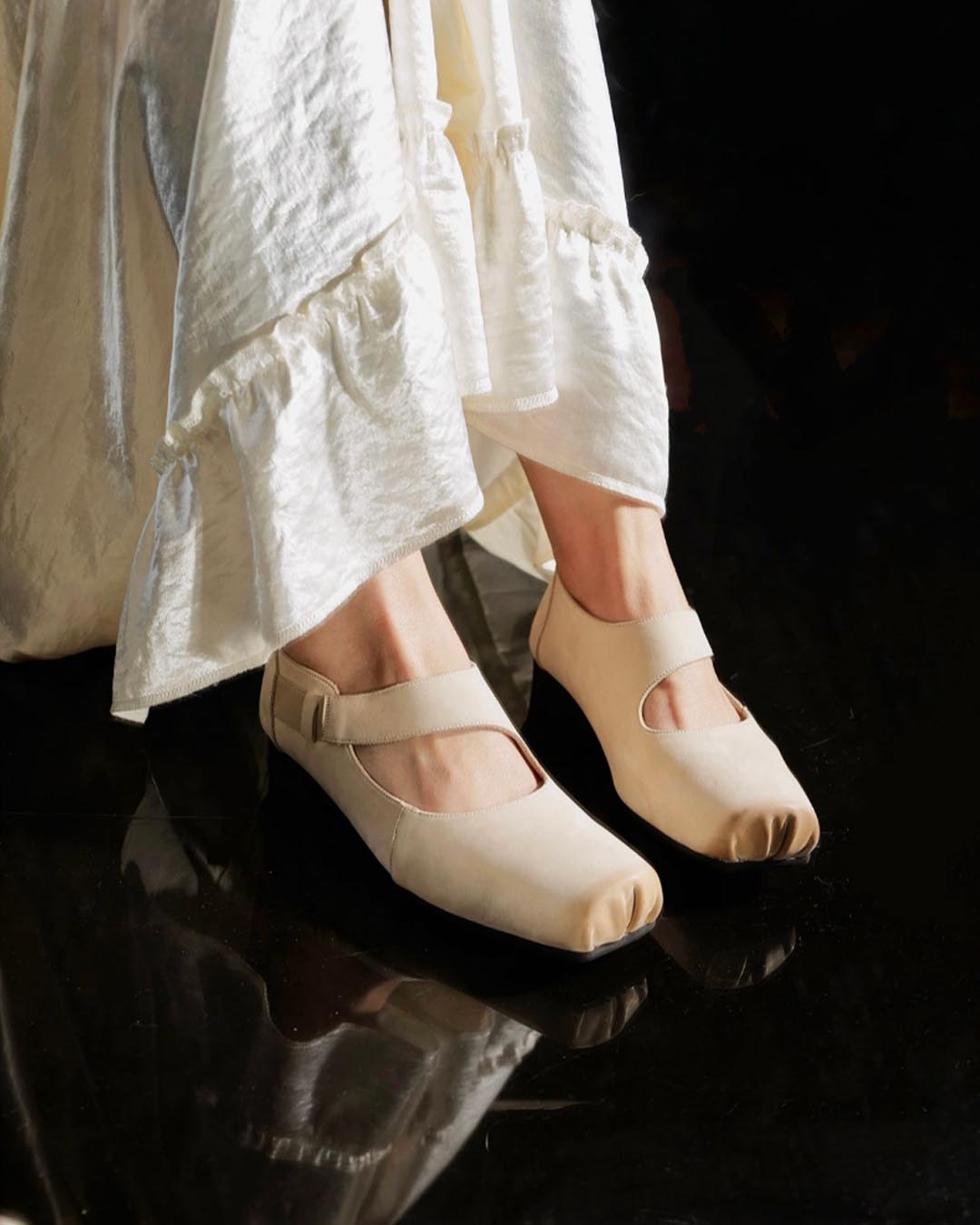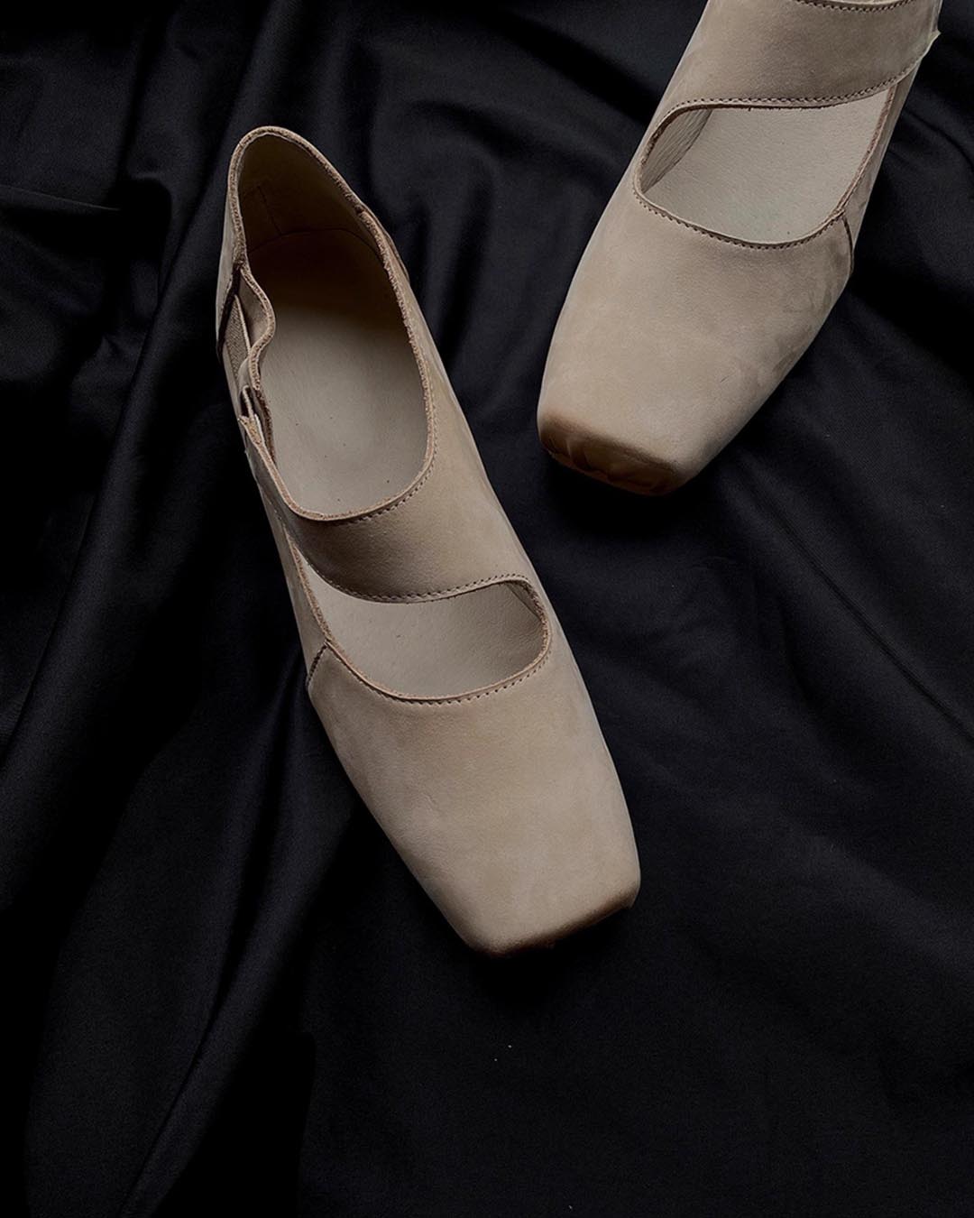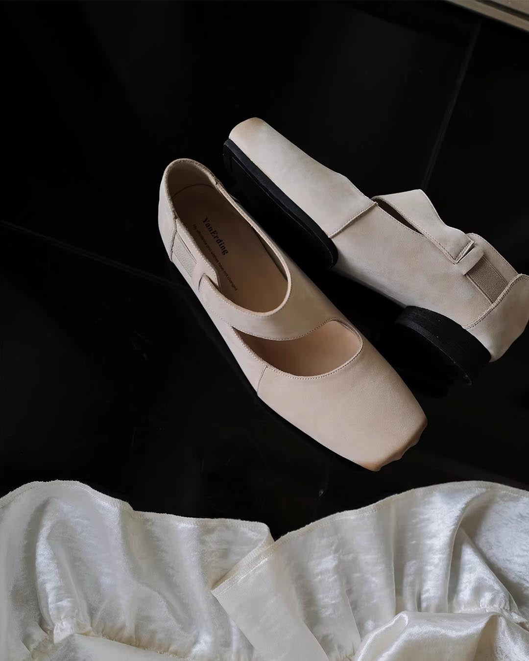 HANDCRAFTED SUEDE LEATHER VINTAGE BALLET FLATS - CREAMY