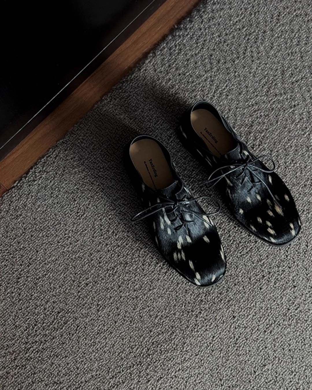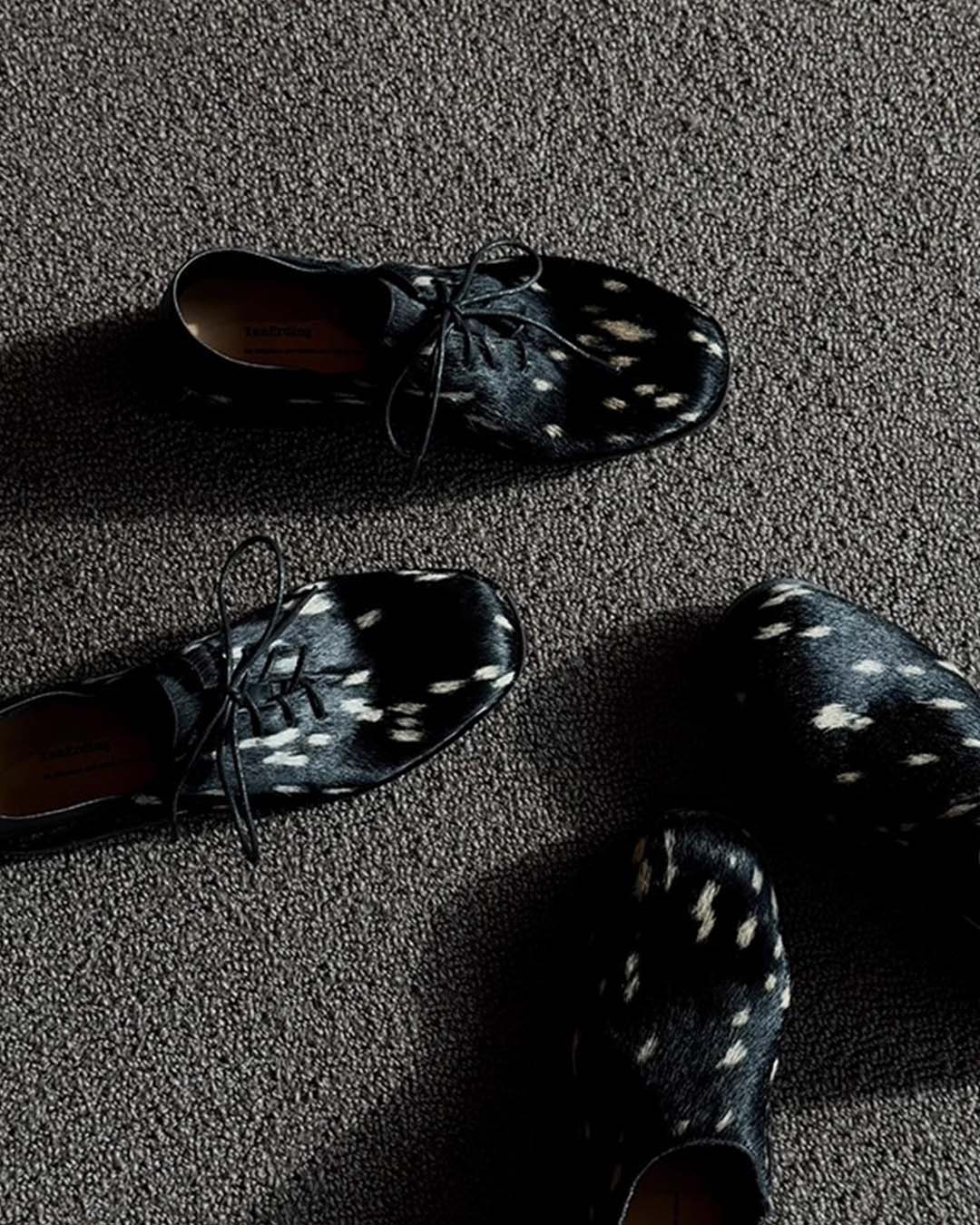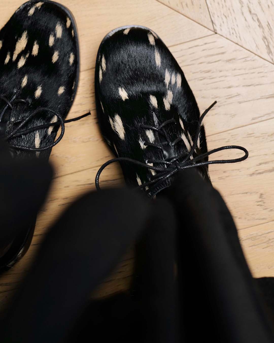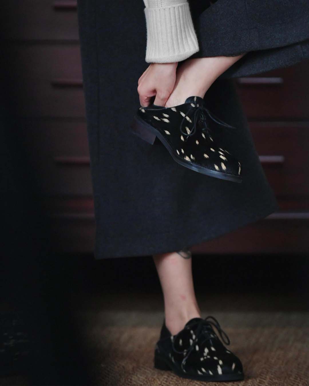 HAND-SPLASHED PONY HAIR DERBY SHOES - BLACK