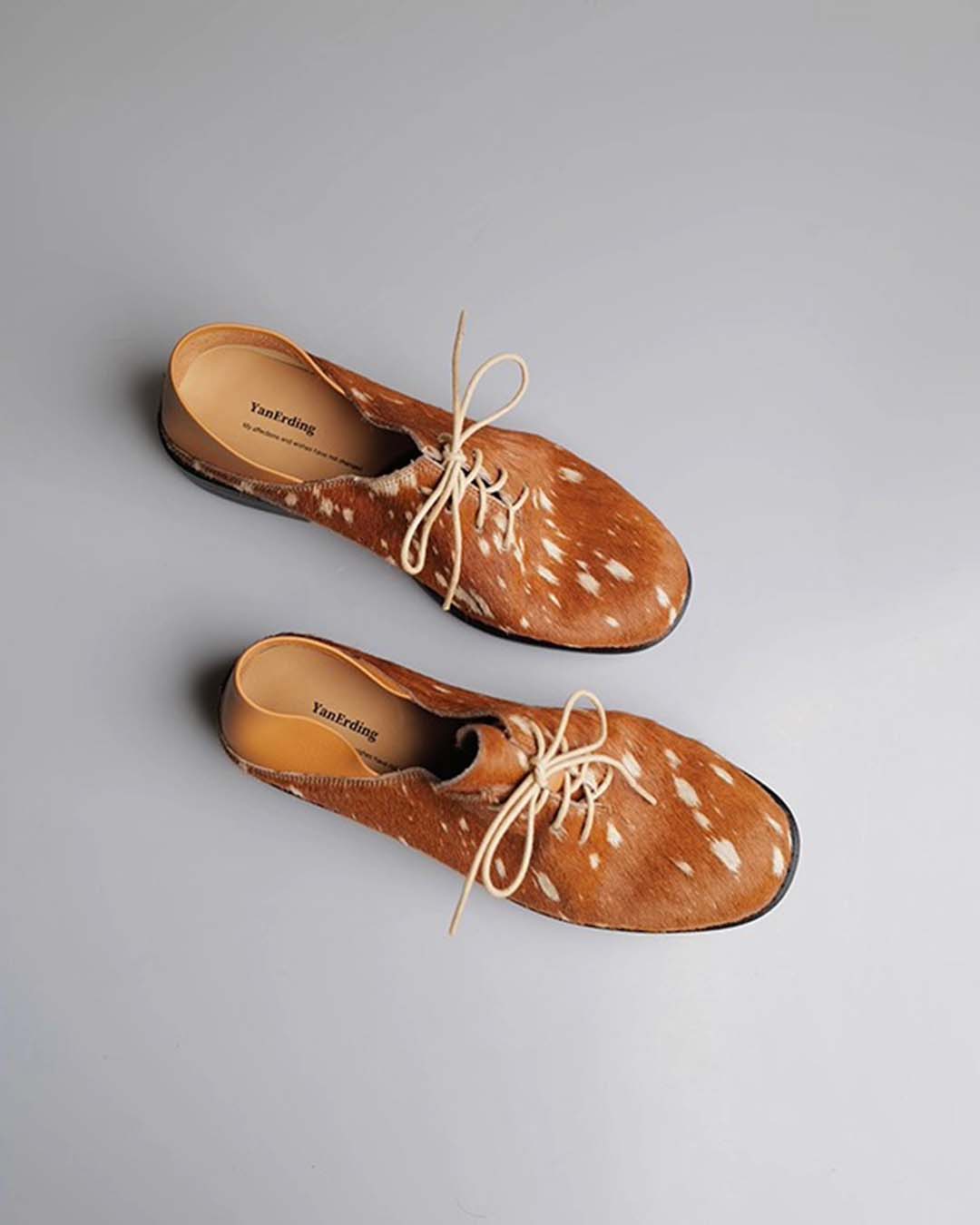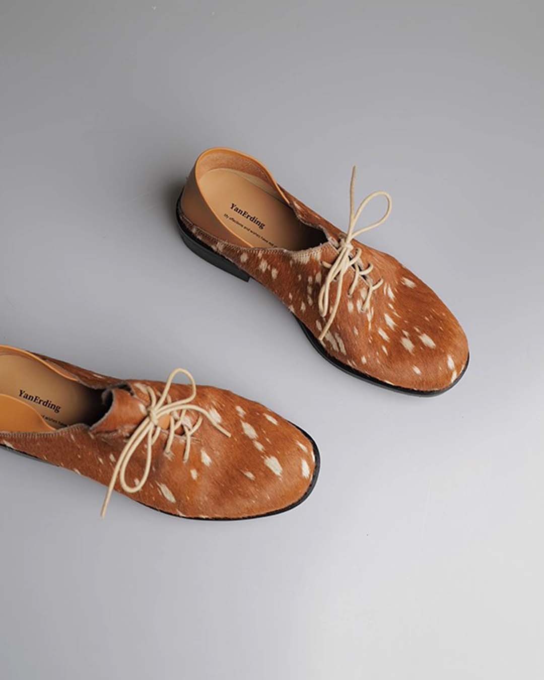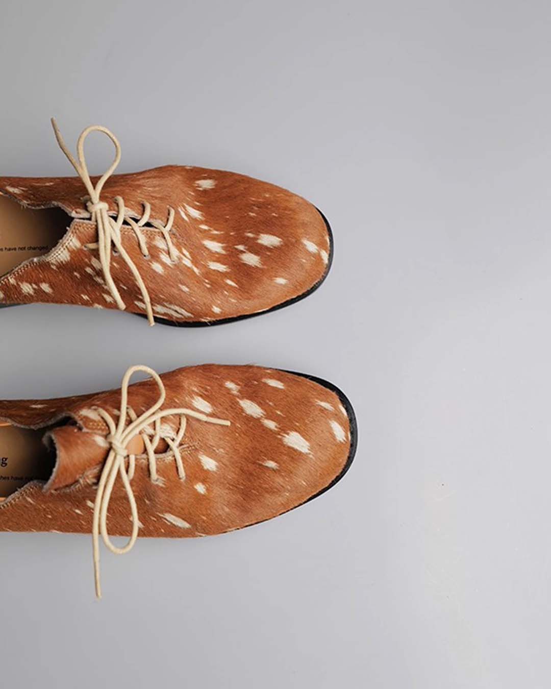 HAND-SPLASHED PONY HAIR DERBY SHOES - BROWN