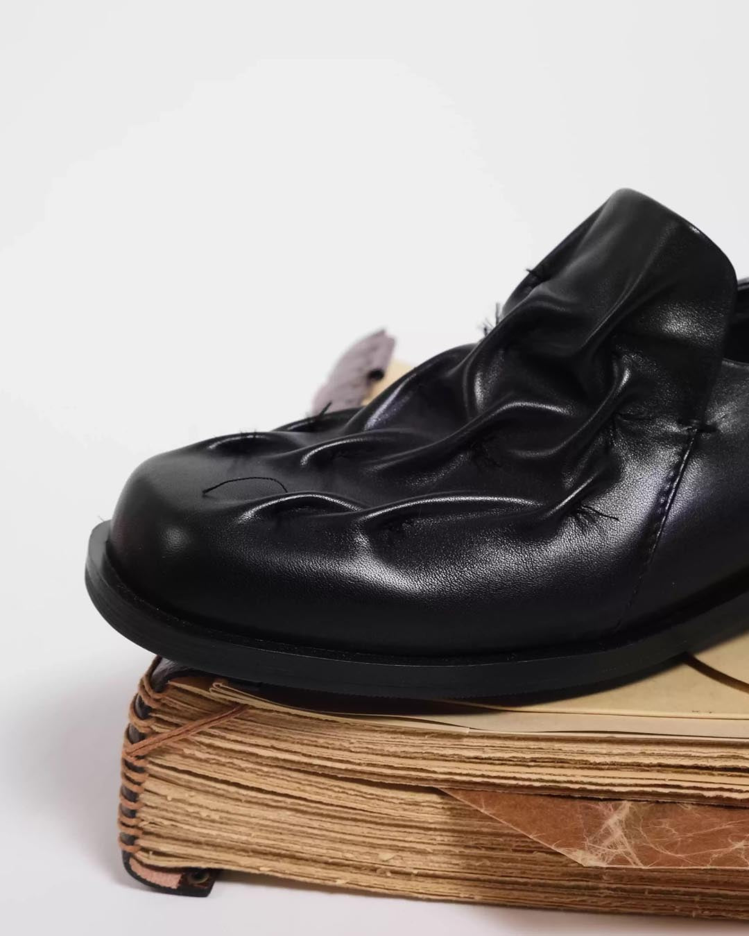 HANDCRAFTED CLASSIC LEATHER PLEATED LOAFERS - BLACK