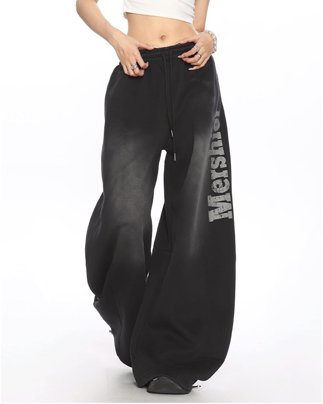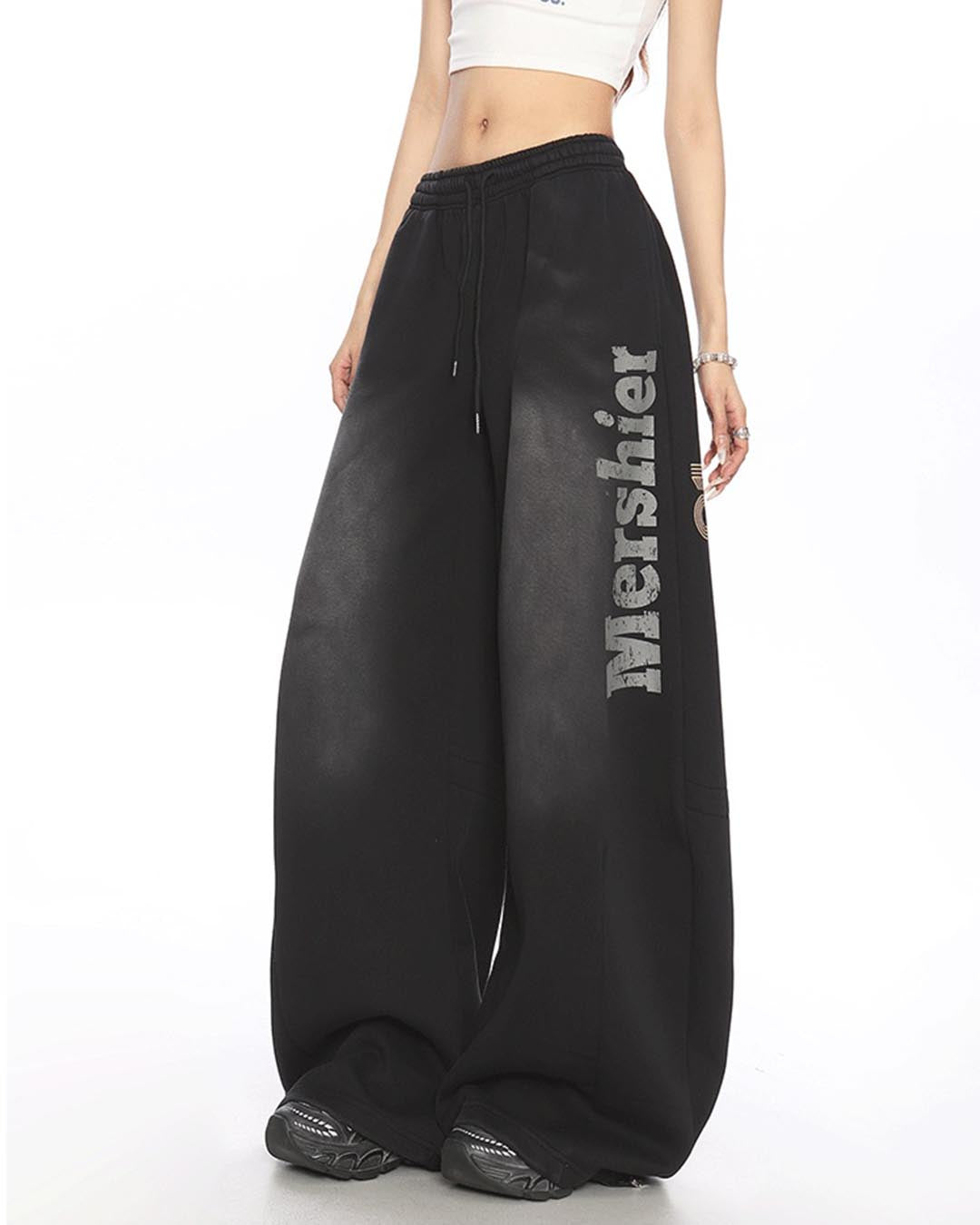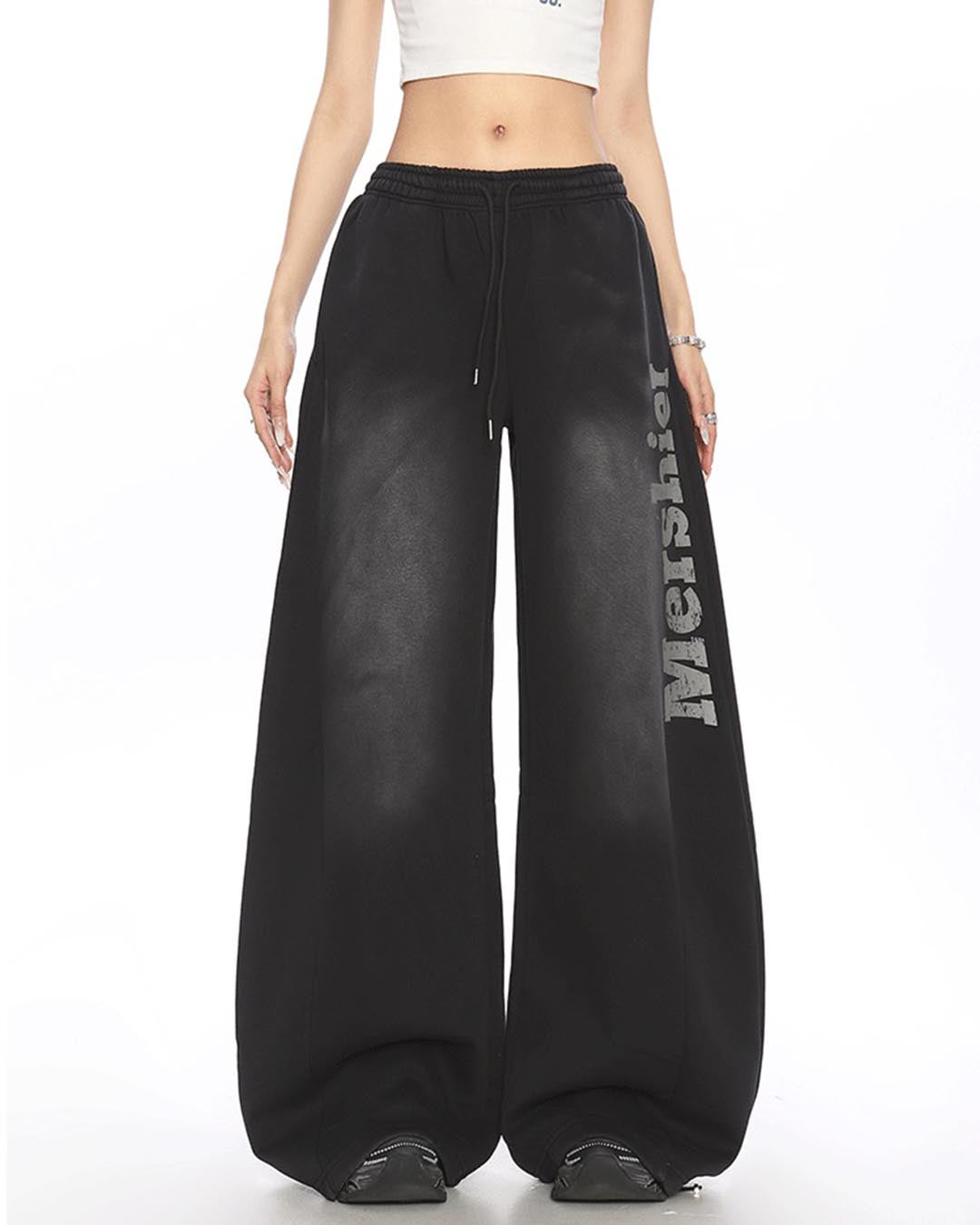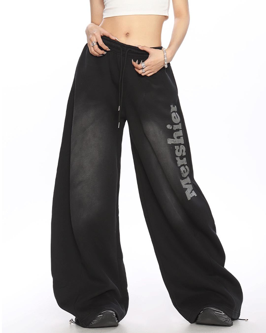 VINTAGE DISTRESSED LETTER SABER LEG SWEATPANTS - BLACK
