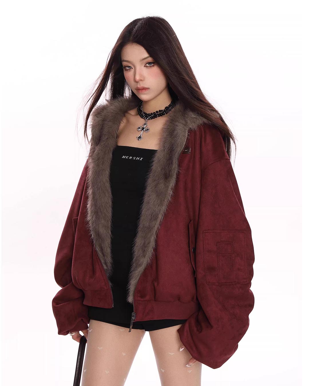 REVERSIBLE FAUX SUEDE JACKET - RED