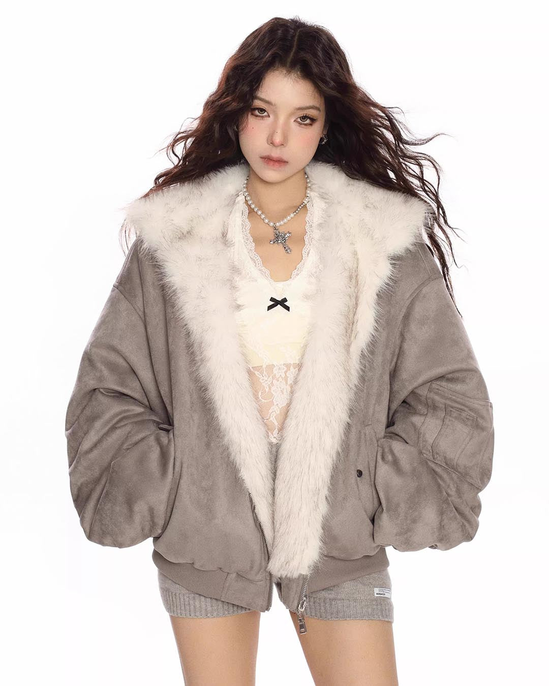 REVERSIBLE FAUX SUEDE JACKET - GREY