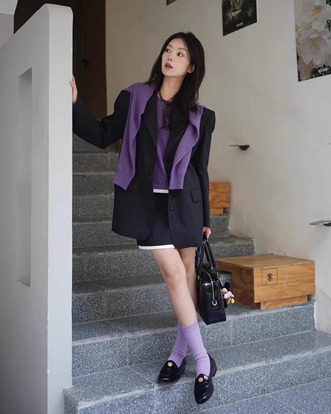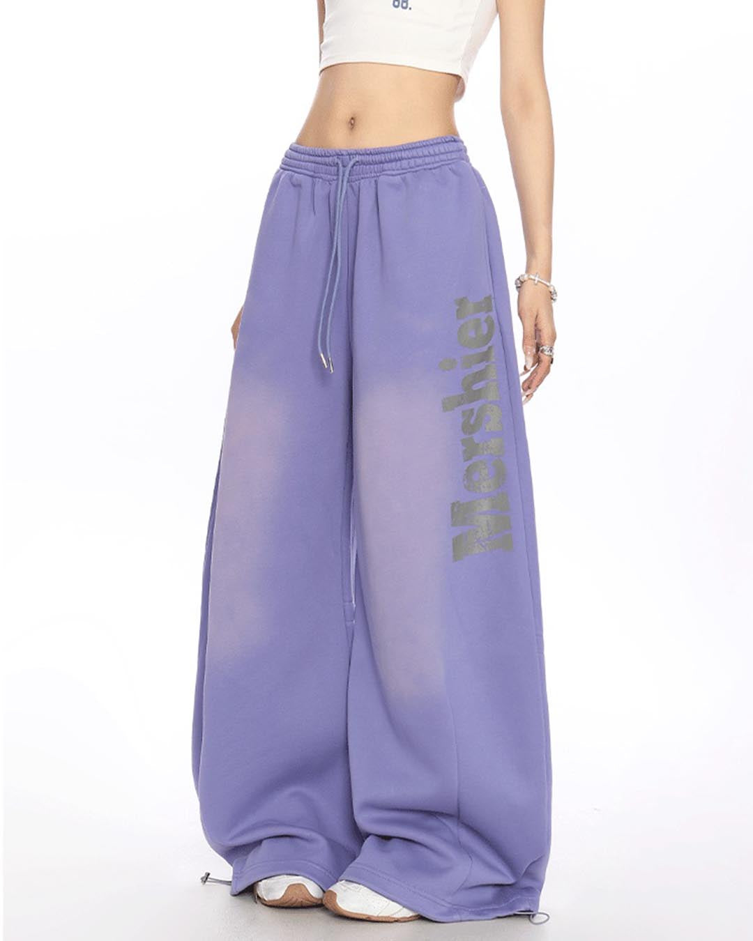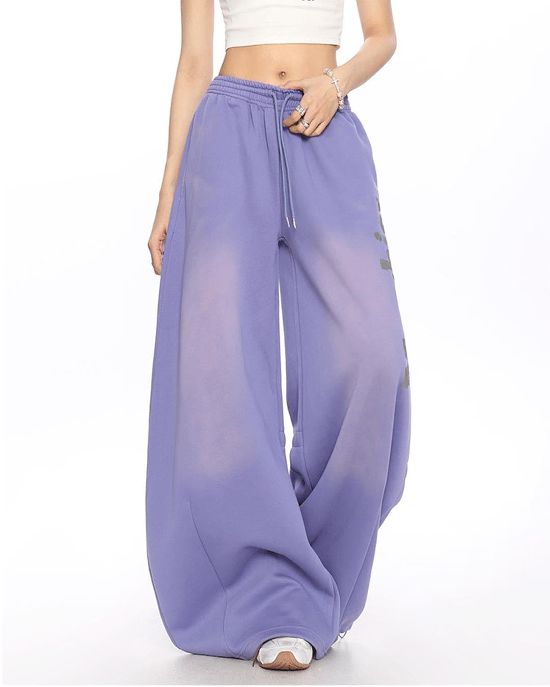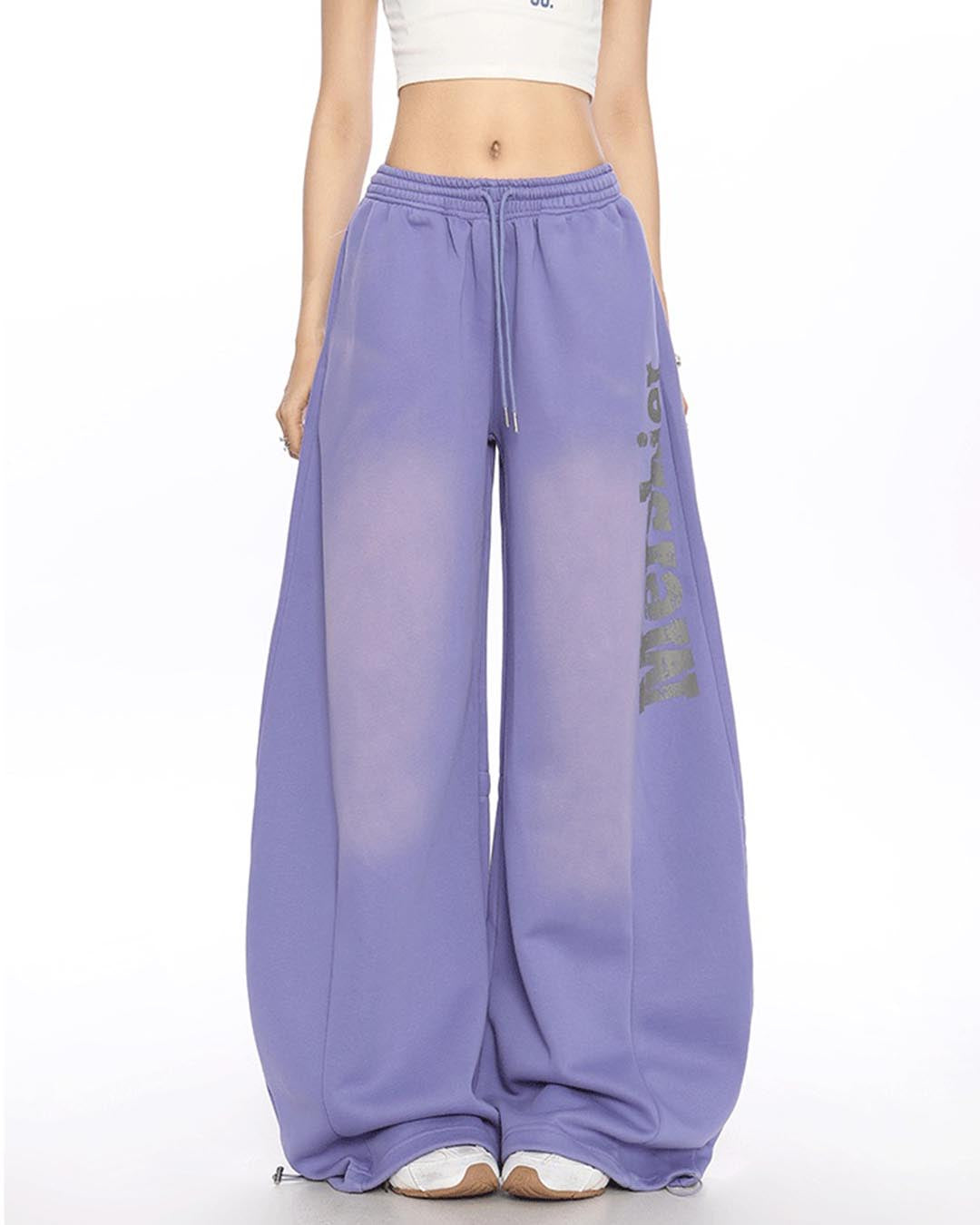 VINTAGE DISTRESSED LETTER SABER LEG SWEATPANTS - PURPLE