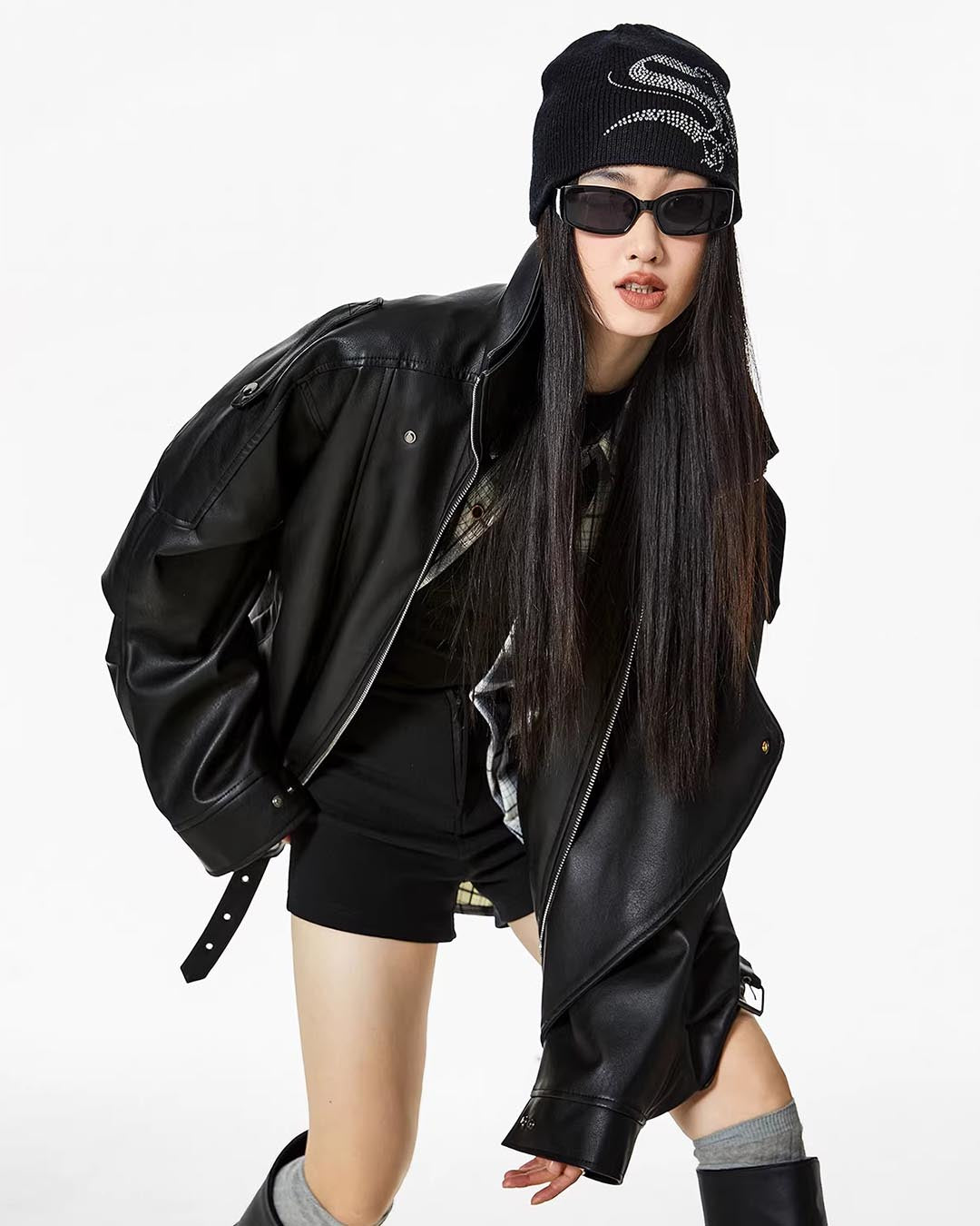 VINTAGE MOTO LEATHER JACKET - BLACK