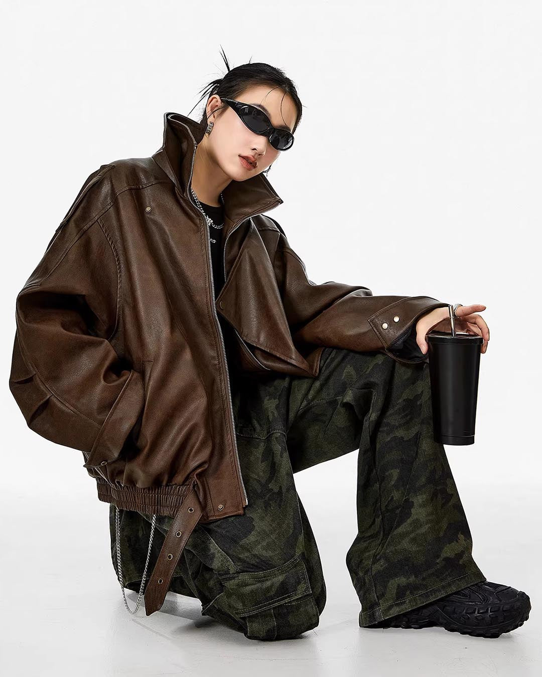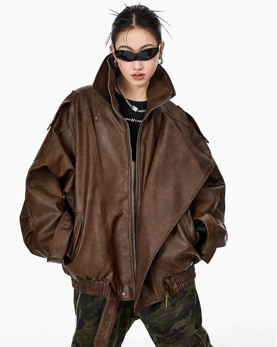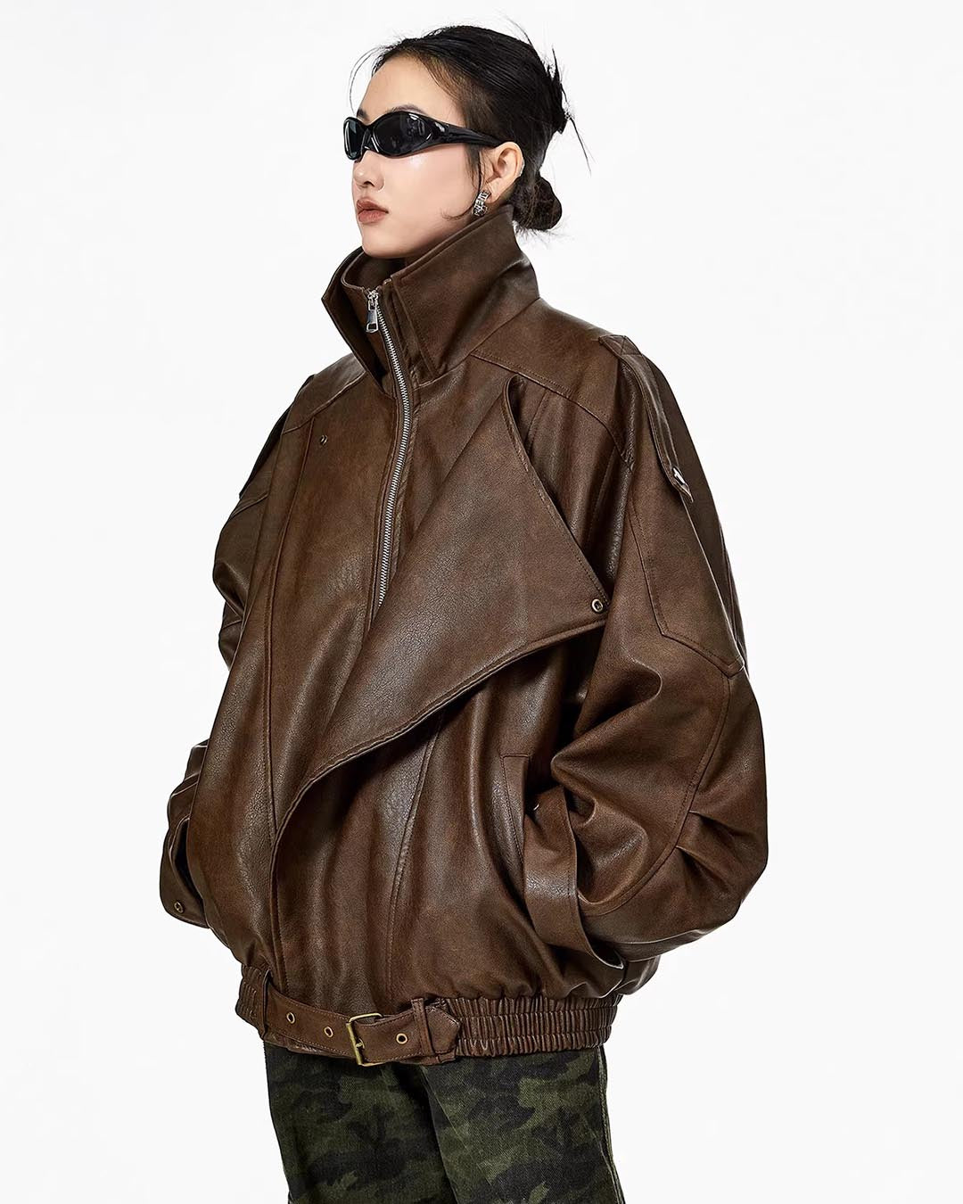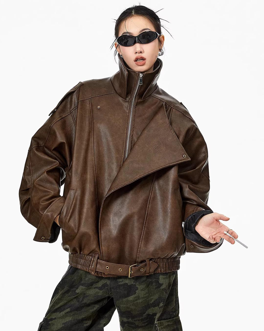 VINTAGE MOTO LEATHER JACKET - COFFEE