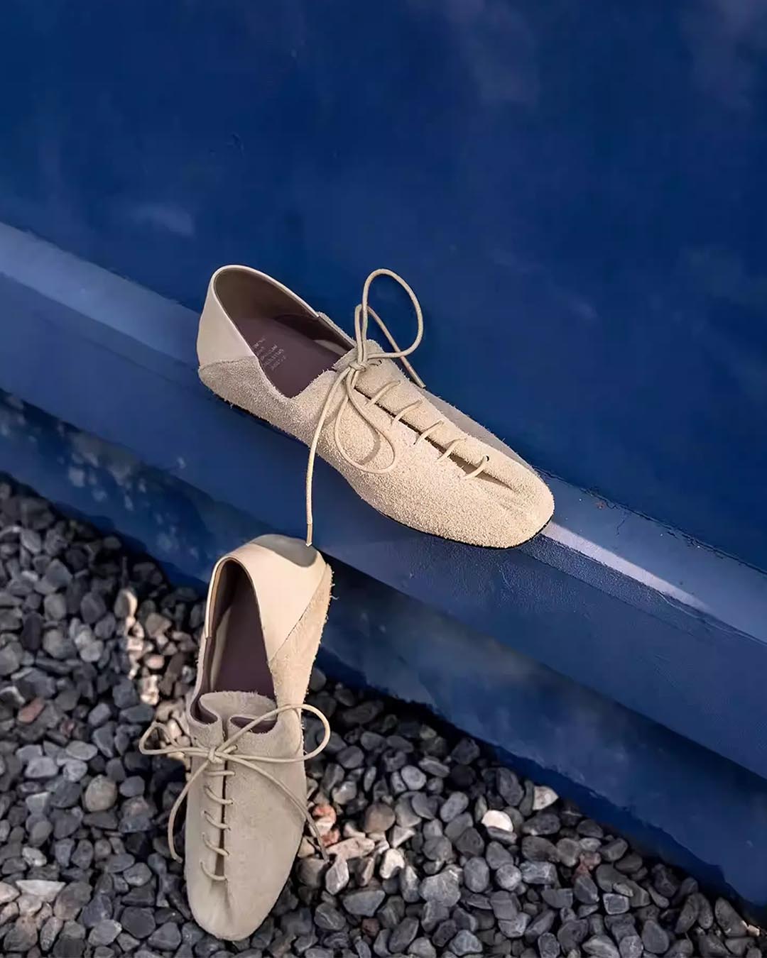 RETRO SOFT SQUARE-TOE FROSTED DERBY SHOES - SAND