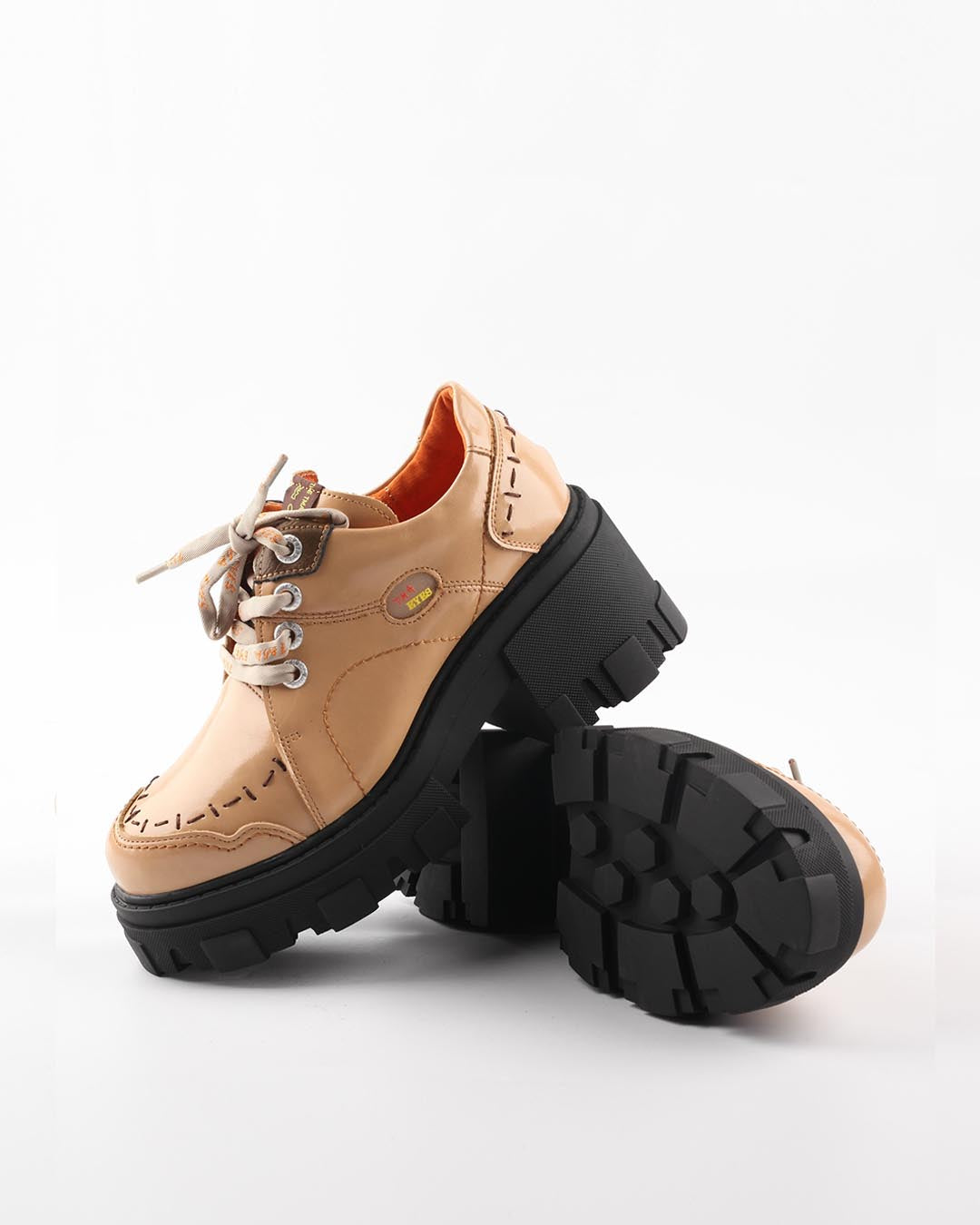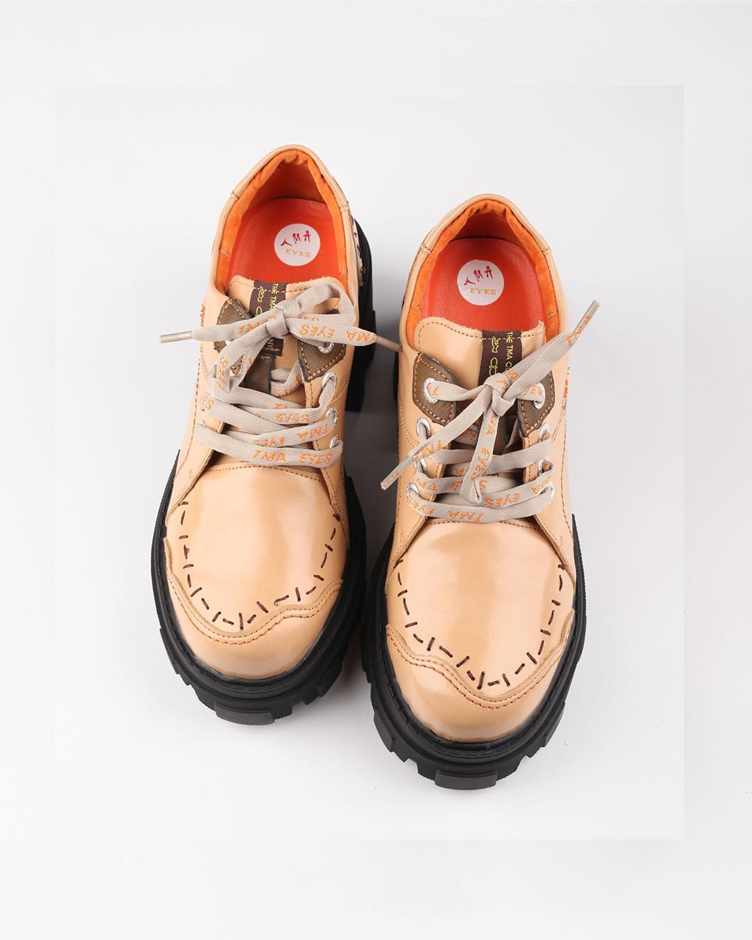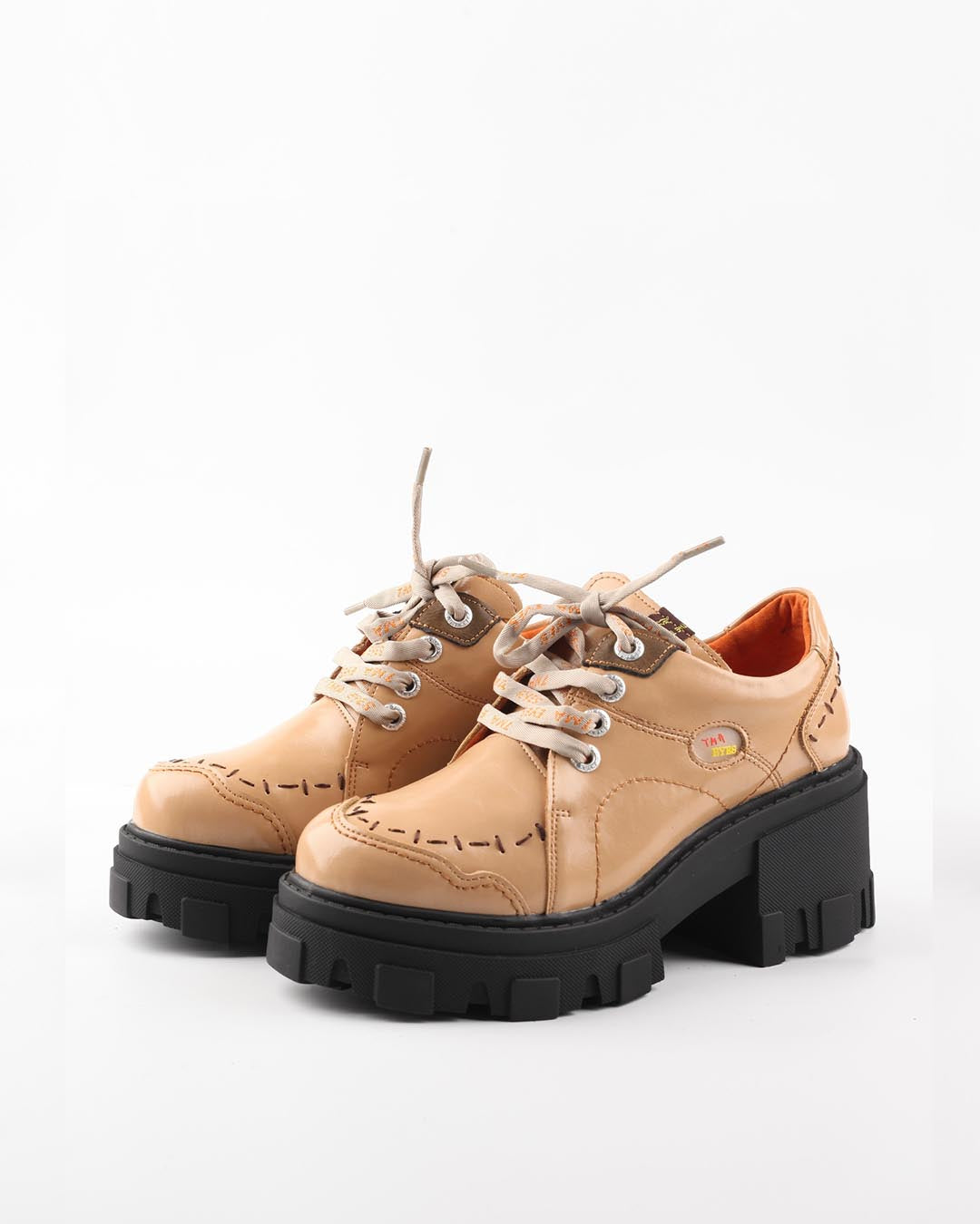 TMA EYES BLOCK-HEEL PLATFORM DERBY SHOES - APRICOT