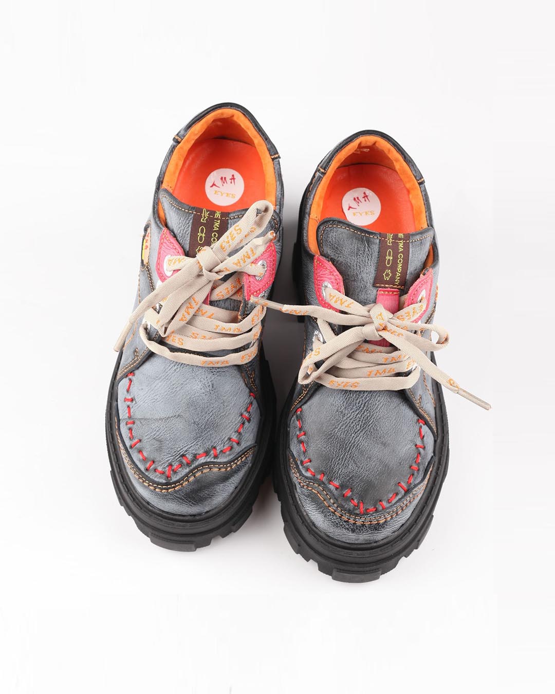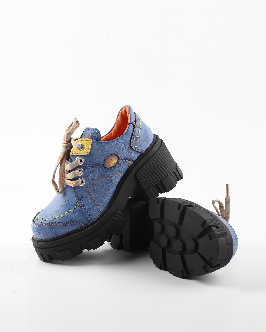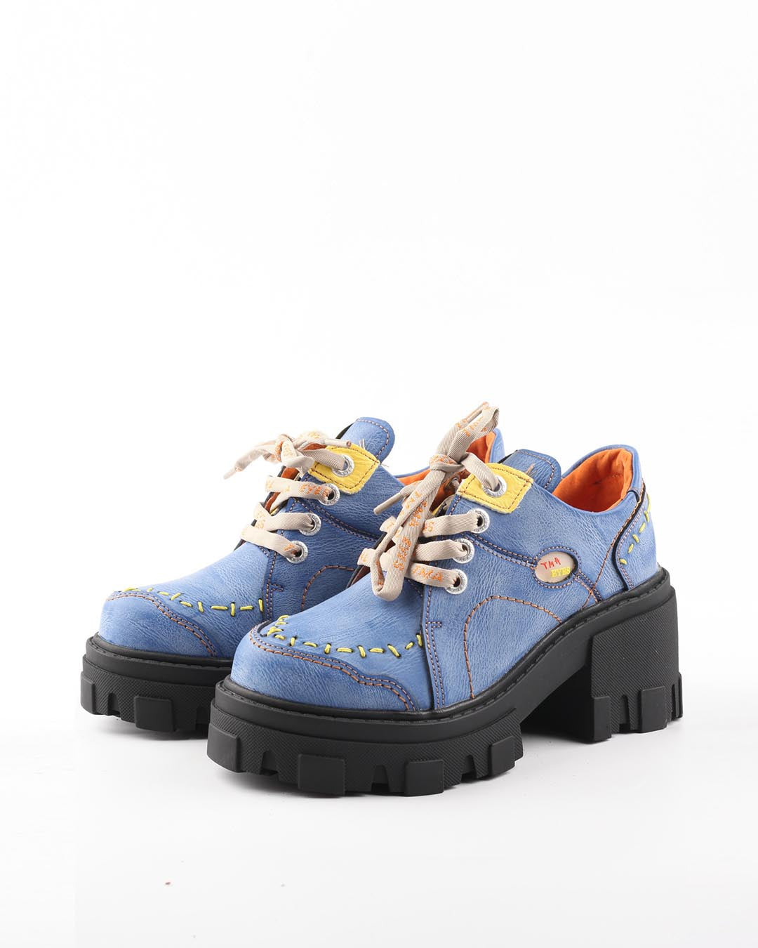 TMA EYES BLOCK-HEEL PLATFORM DERBY SHOES - BLUE