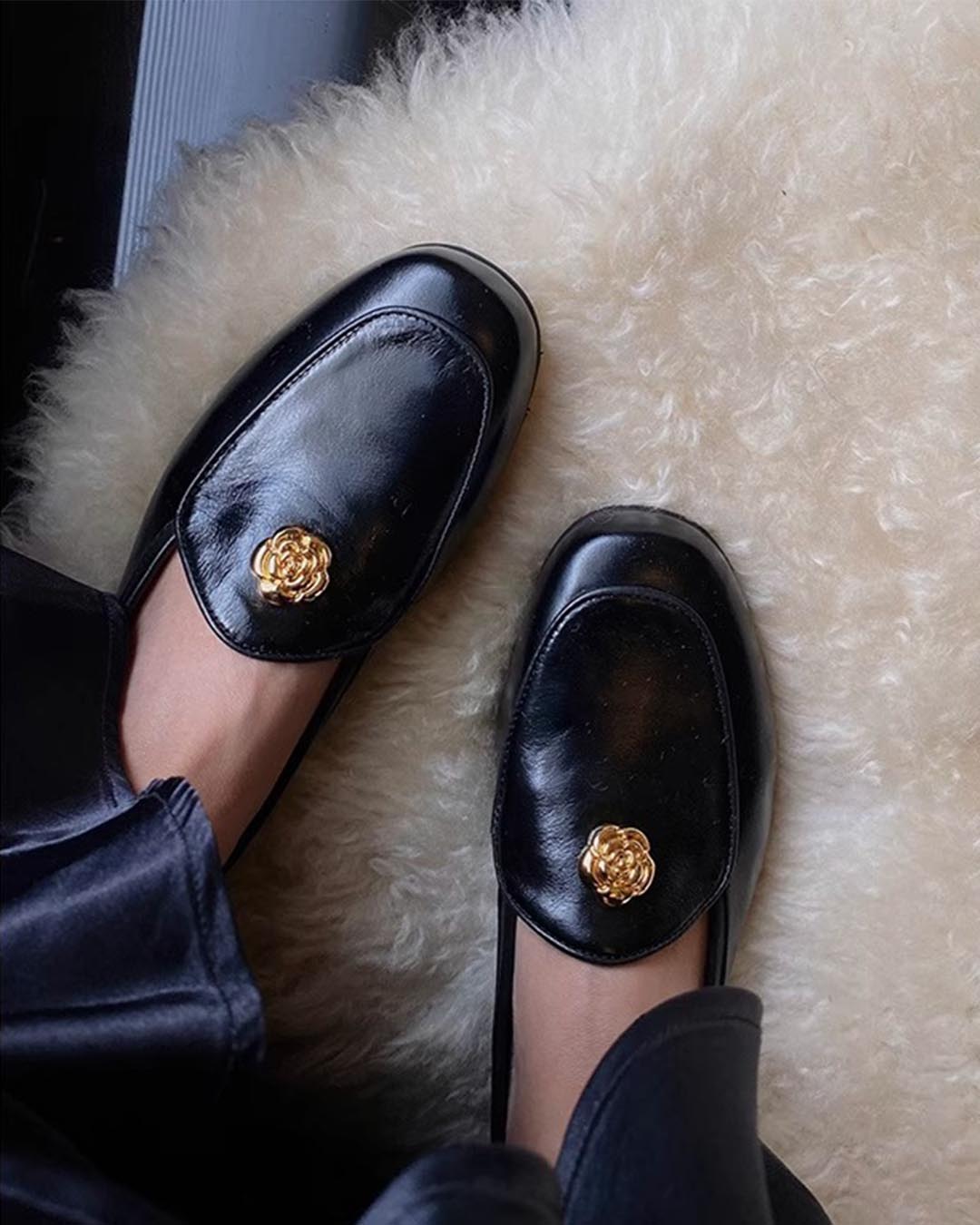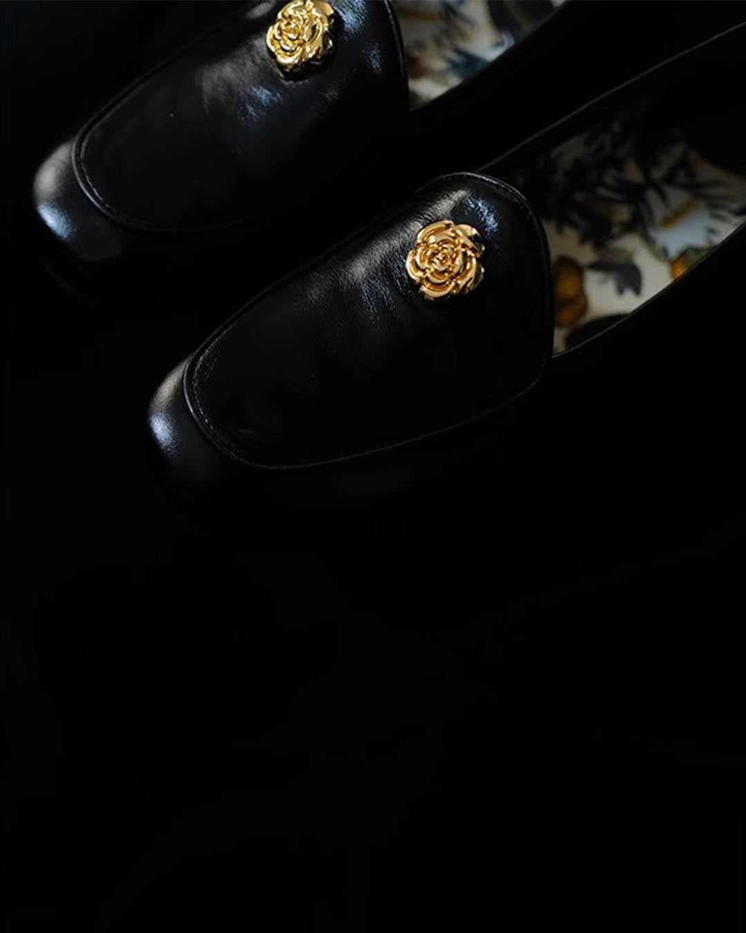 CAMELLIA SECRET GARDEN LOAFERS - BLACK