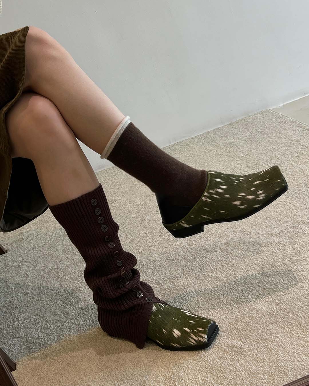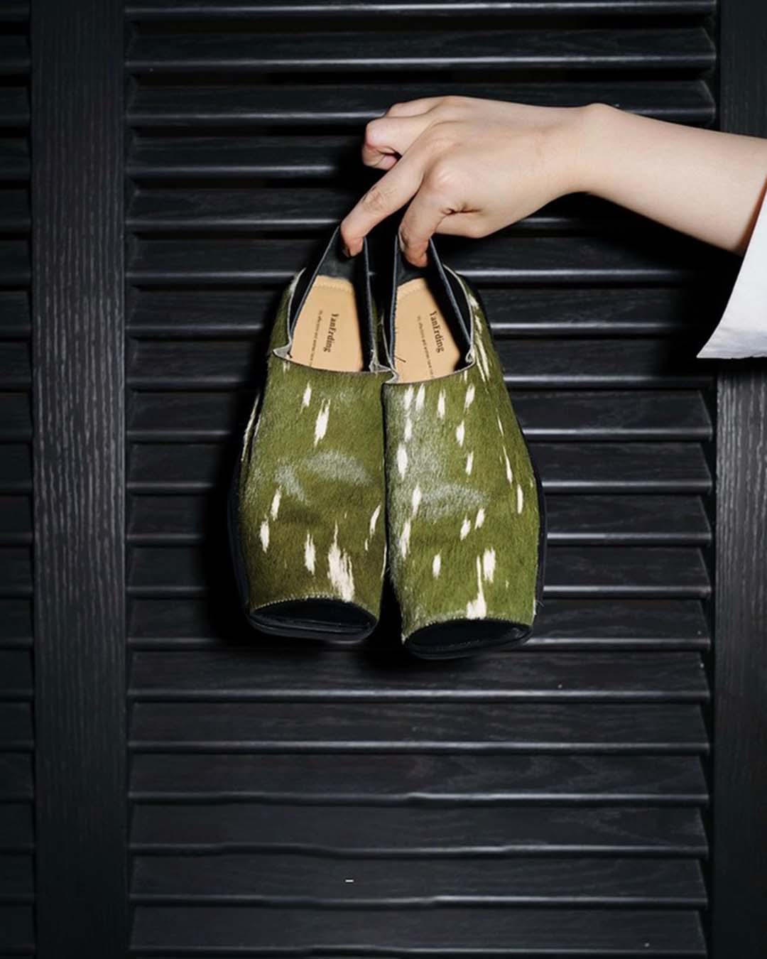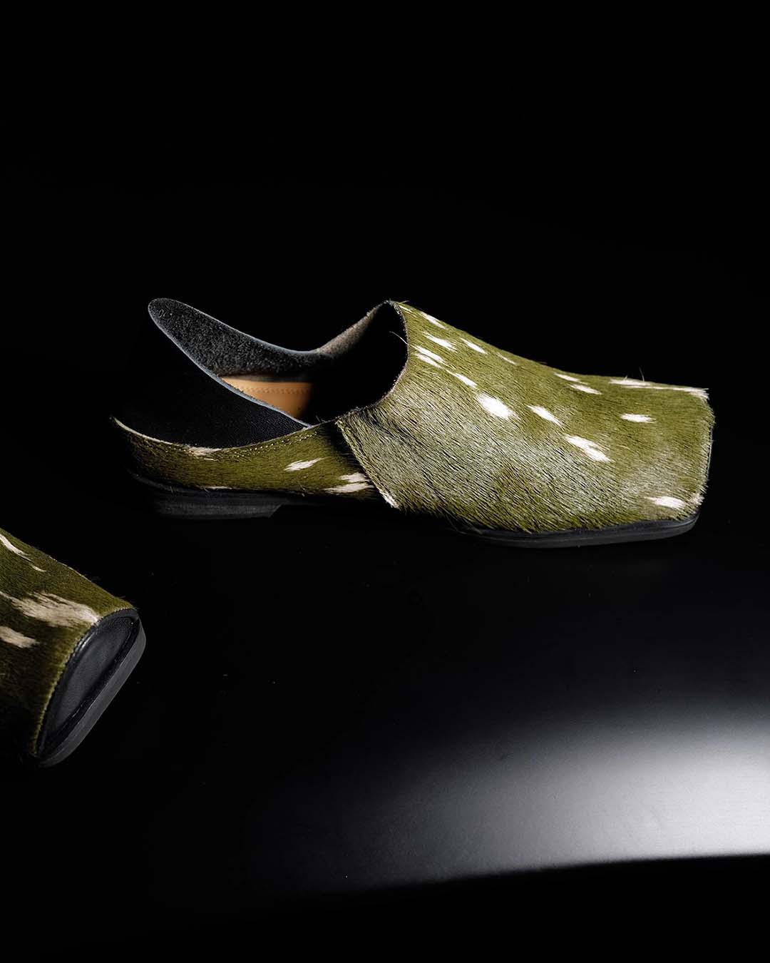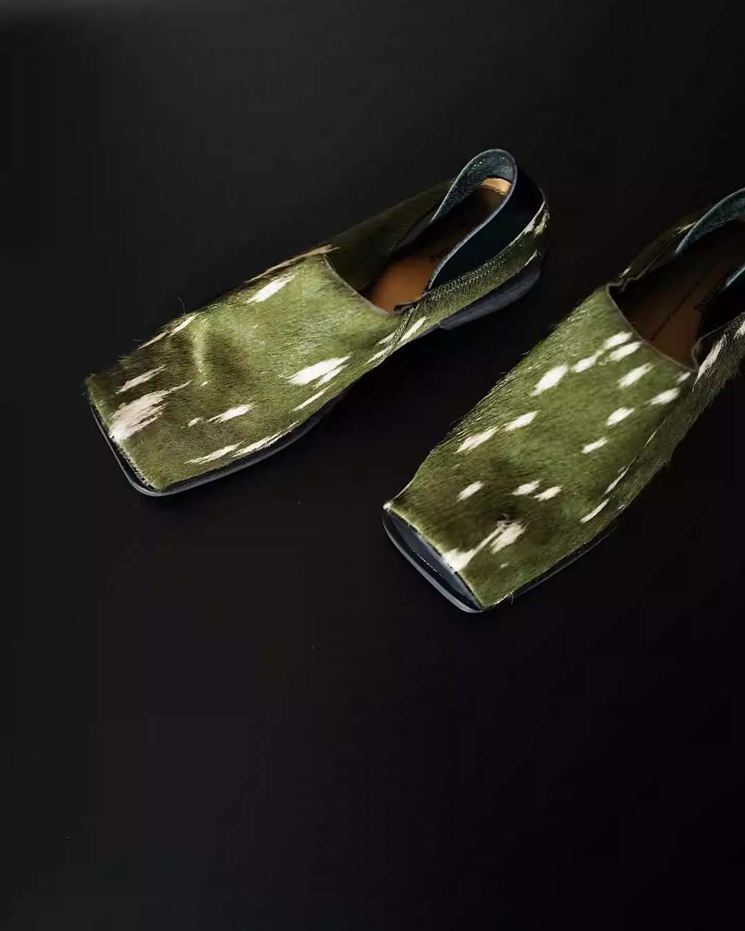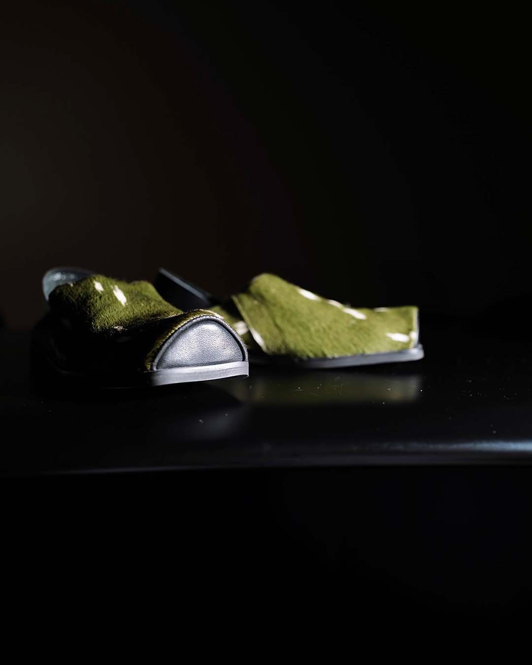 HAND-SPLASHED PONY HAIR MULE SHOES - GREEN