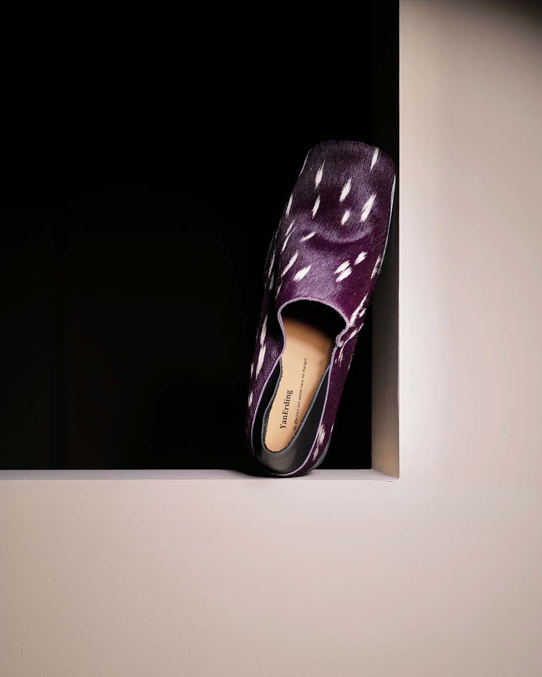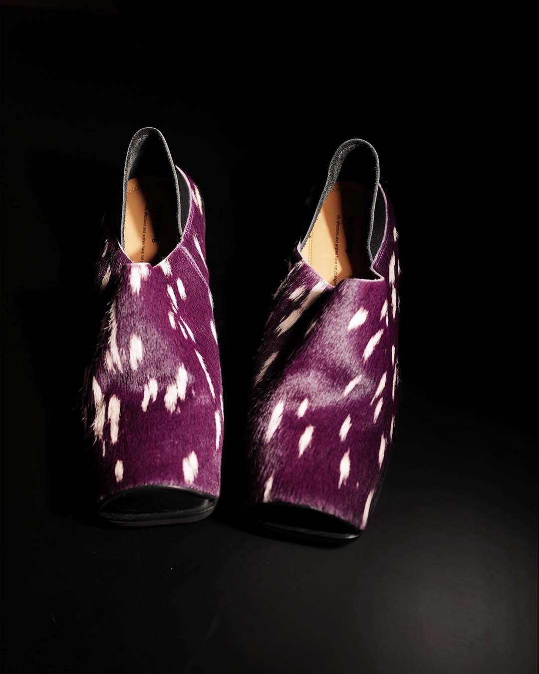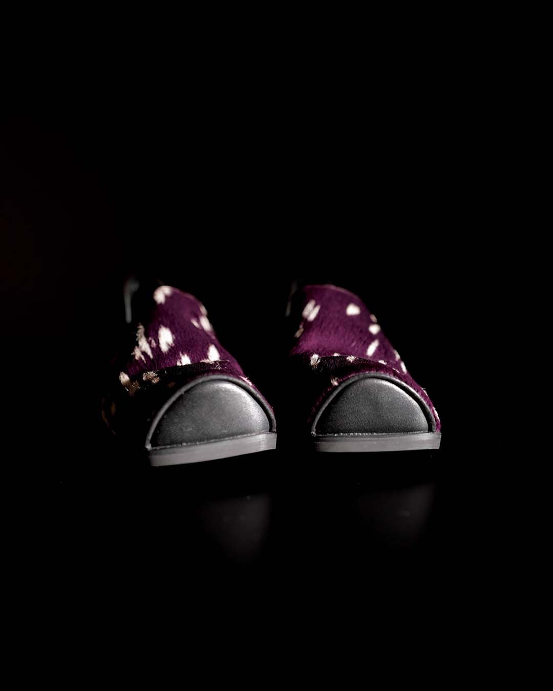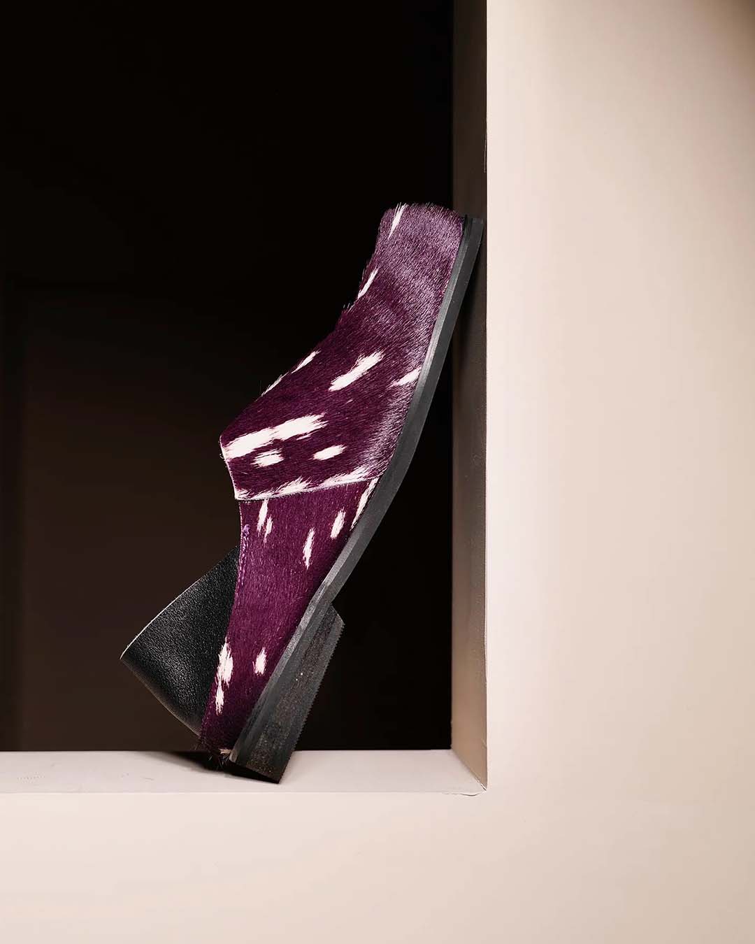 HAND-SPLASHED PONY HAIR MULE SHOES - PURPLE