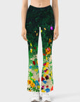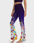 Oil painting abstract colorful flowers flare leggings